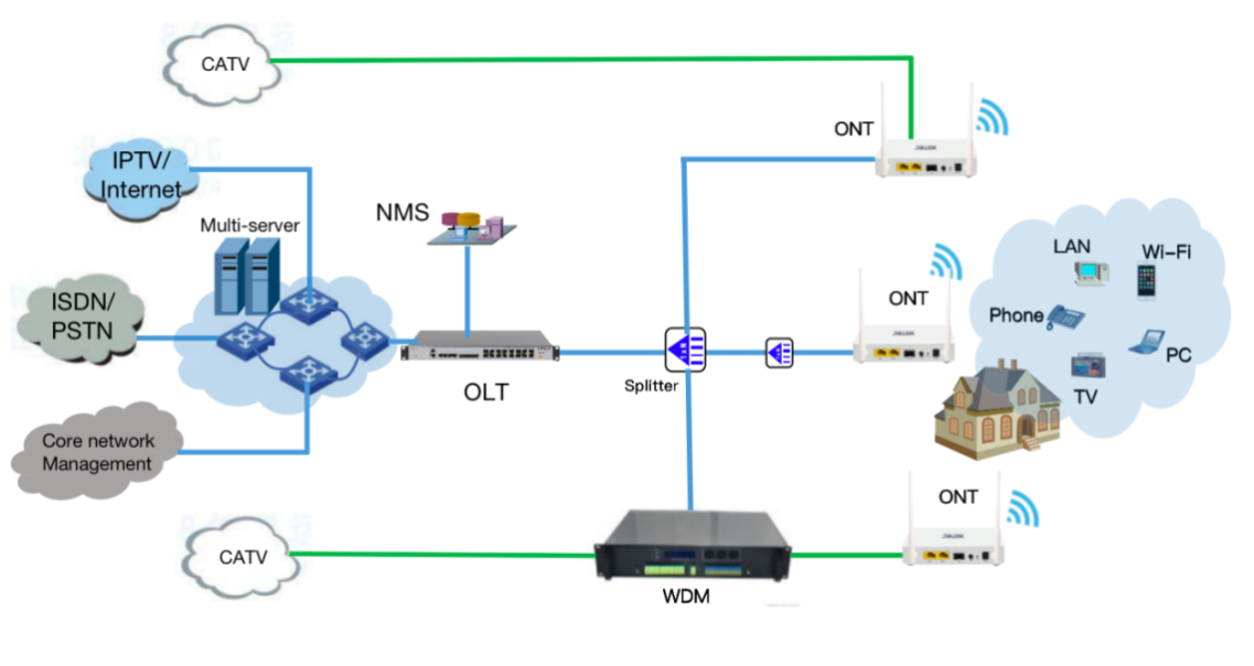 High splitting ratio, each PON port supports 64*ONUs Maximum transmission distance 20KM